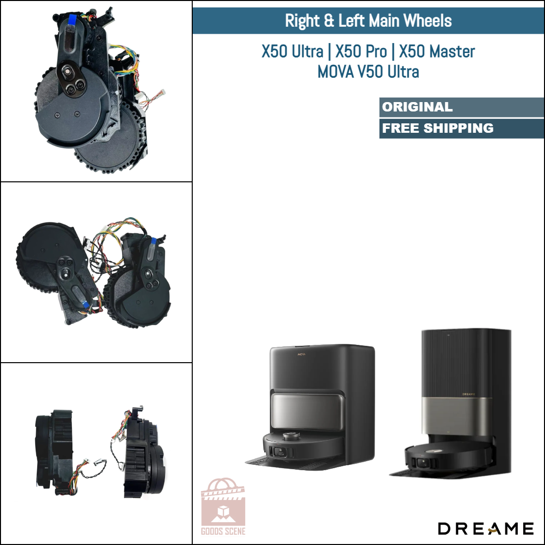 Dreame X50 Ultra, X50 Pro, X50 Master, MOVA V50 Ultra | Original Spare & Repair Parts: Main Right & Left Wheels