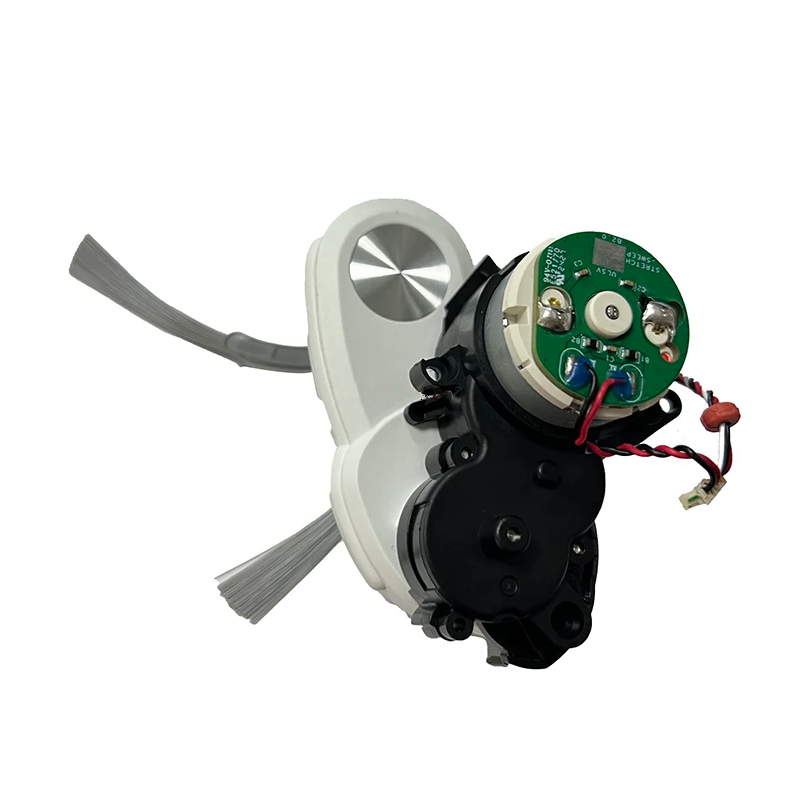 This is the motor/gearbox (white) responsible for rotating and retracting the side brush as the robot approaches corners and edges.